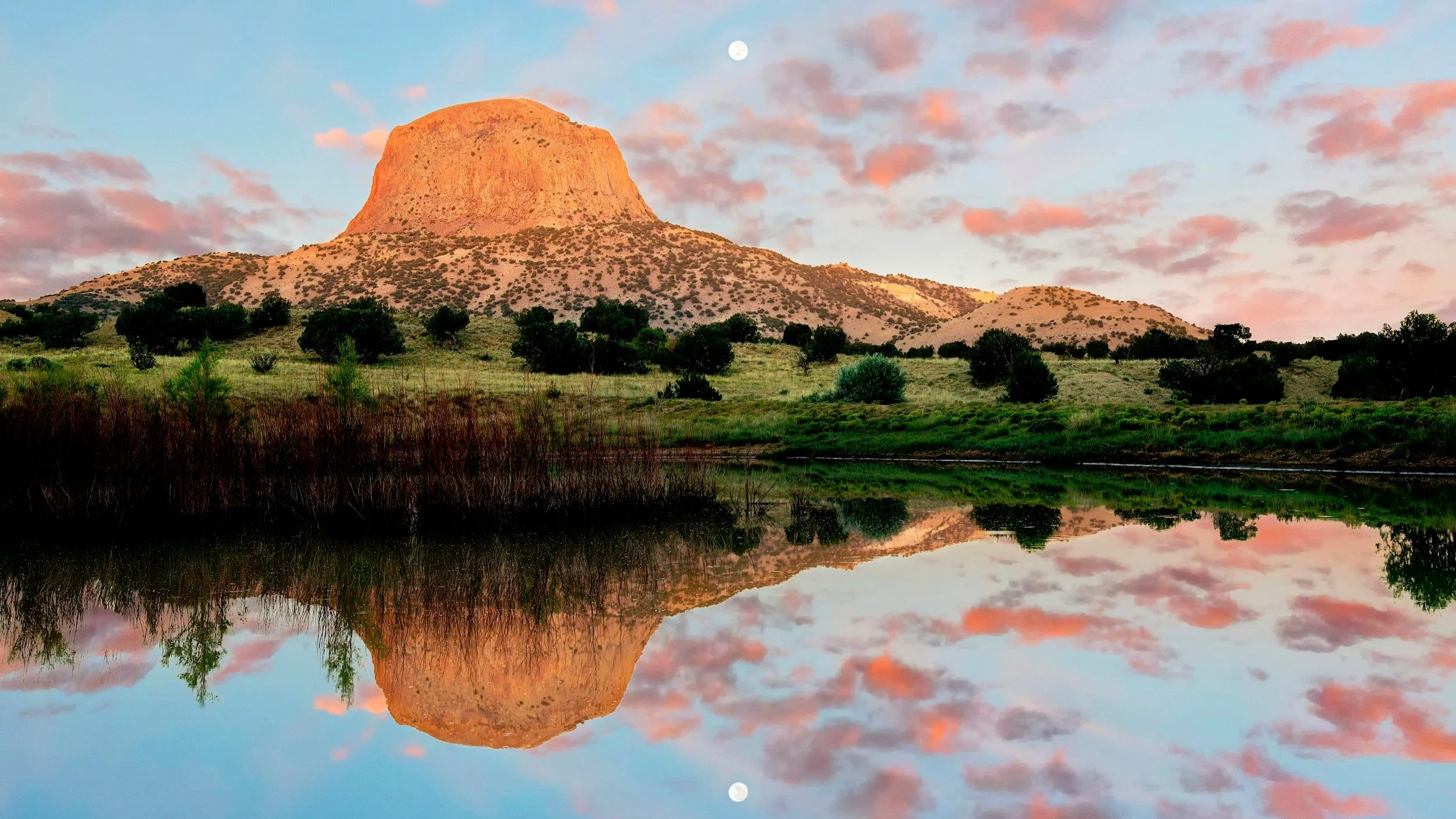 Cabezon Peak is a striking volcanic neck formation that rises dramatically from the desert landscape, reaching an elevation of 7,785 feet. This iconic landmark, located within the Rio Puerco Valley, was formed from ancient lava that solidified in the vent of a volcano millions of years ago. Its name, Cabezon, which means "big head" in Spanish, perfectly captures its bold, commanding presence.